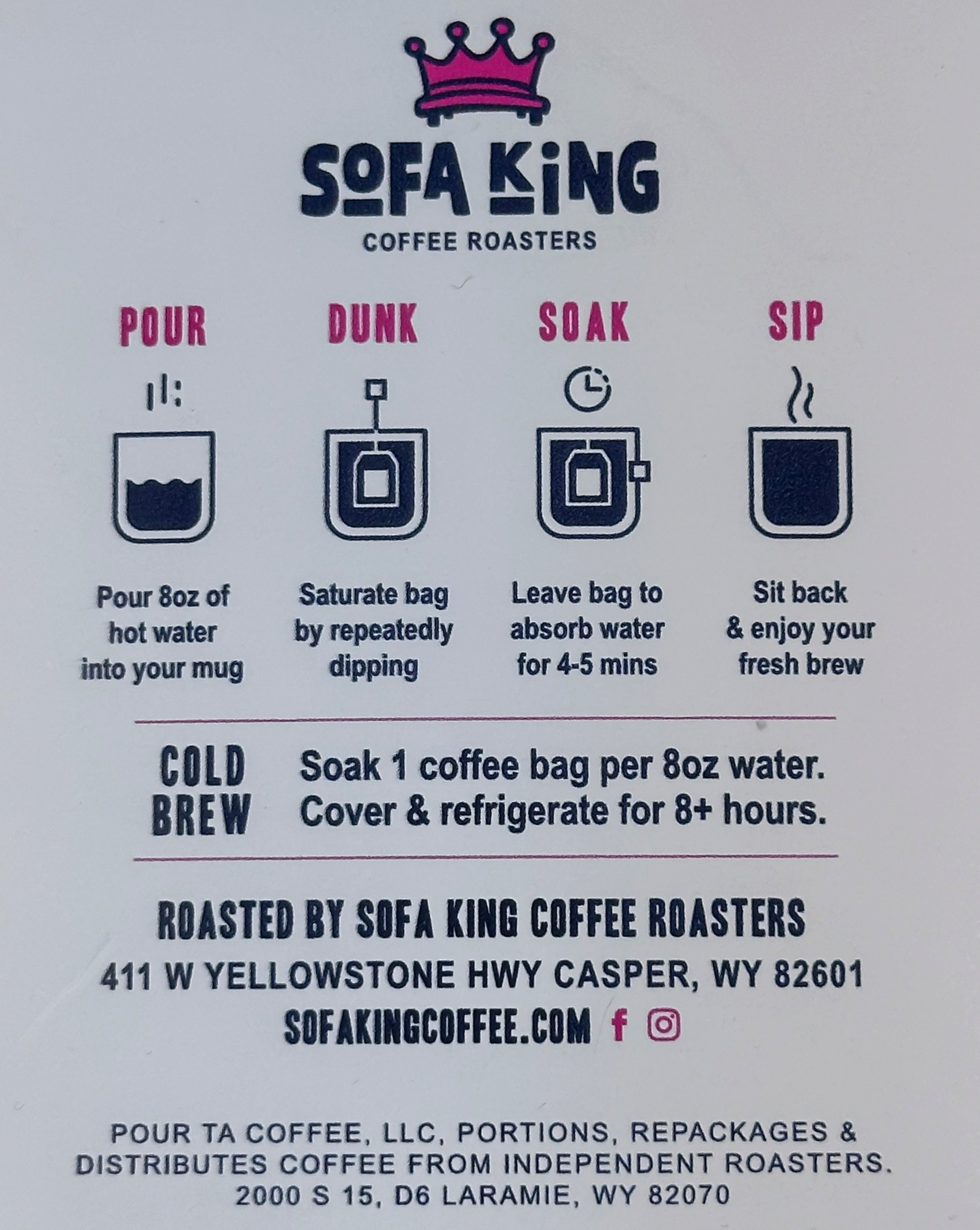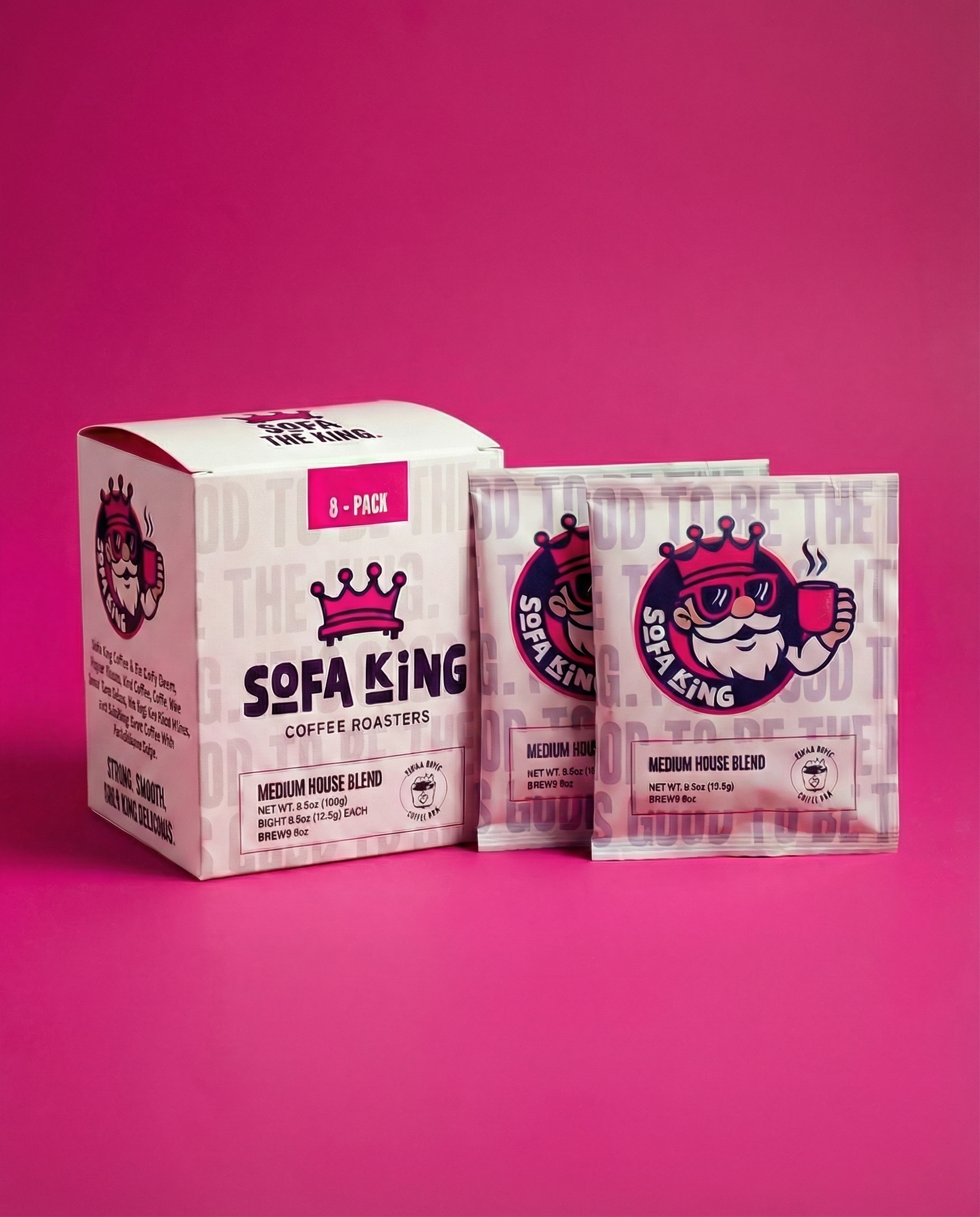 Medium House Blend. Single serving coffee sachets. Perfect for on the go. Travel-friendly quick and easy coffee. Take Sofa King coffee with you and make your brew simple with our Pour Ta.